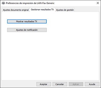 Seleccione la pestaña [Gestionar resultados TX] y haga clic en [Ajustes de notificación].