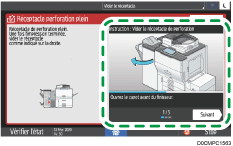 2Appuyez sur [Instr.: Vider récept. ] sous « Bac perforation plein ».