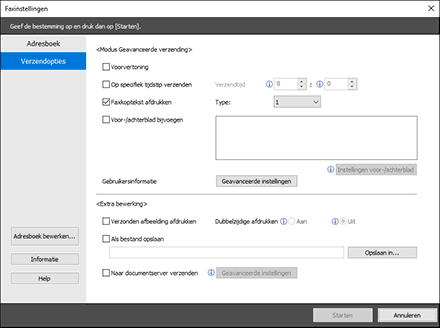 3Klik op [Verzendopties][Geavanceerde instellingen].