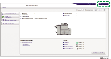 Аутентификацию администратора можно также активировать с помощью Web Image Monitor. Для получения подробных сведений см. справку по Web Image Monitor.