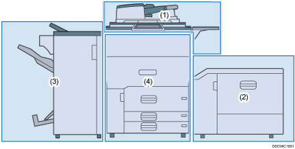 4 | Förlängningsenhet för stormagasin | Ansluts till stormagasinet och rymmer 2 500 ark i format B4 JIS (japansk industristandard) |