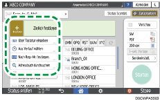 Zur manuellen Eingabe der E-Mail-Adresse wählen Sie das Ziel aus dem Zielverlauf aus oder suchen Sie nach dem Ziel im Adressbuch des Geräts, drücken Sie auf