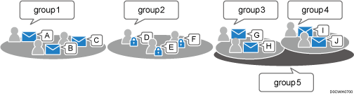 You can add registered destinations or users to a group. You can create groups in a hierarchical structure.