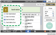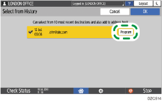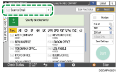 To enter the e-mail address manually, select the destination from the destination history, or search for the destination in the machine address book, press