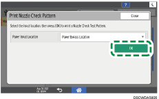3Select the paper input location from which you want to print out the test pattern, and then press [OK].