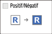 Vous pouvez numériser un original dans les couleurs complémentaires avec une densité et une luminosité inversées (Positif / Négatif).