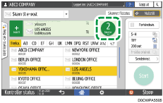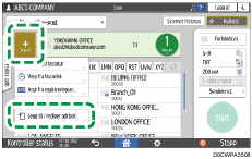 For å angi e-postadressen manuelt kan du velge mottakeren fra mottakerhistorikken, eller søke etter mottakeren i maskinens adressebok. Trykk på
