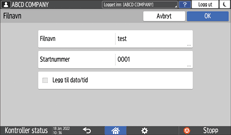 For å angi filnavnet trykk på [Filnavn] og skriv inn filnavnet.