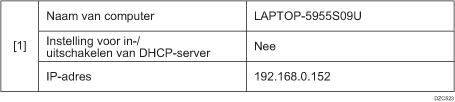 Controleer de computernaam, activeer/deactiveer de status van de DHCP-server en het IP-adres, en noteer de informatie bij [1] op het controlevel.