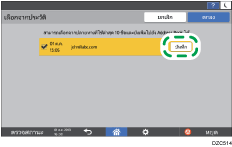 เมื่อเลือกจากประวัติการส่ง ให้กด [บันทึก] ของปลายทางที่จะบันทึก