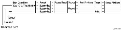 Outputs the "Result", "Status", and job-log input information of common items. When there are multiple sources, multiple lines are output.