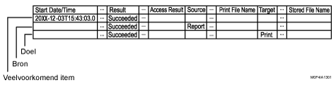Hiermee wordt het "Resultaat", de "Status" en de invoerinformatie van het takenlogboek van veelvoorkomende items uitgevoerd. Als er meerdere bronnen zijn, worden er meerdere regels uitgevoerd.