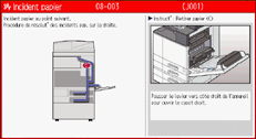 Plusieurs incidents papiers à différents endroits peuvent être indiqués en même temps. Lorsque cela se produit, contrôlez toutes les zones indiquées.