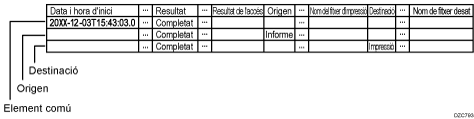 Els elements comuns del registre de treballs i del registre d'accés es mostren en una línia.