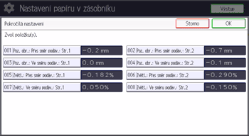 Upravené hodnoty jsou uložené jako nastavení uživatelského papíru.