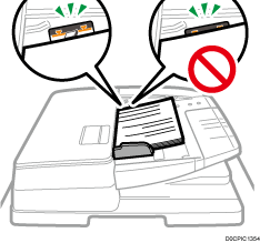 Spær ikke for sensorerne med din hånd. Sørg for at ilægge originalerne ordentligt og ikke skubbe dem ind i ADF'en med kraftanvendelse. Det kan forårsage papirstop eller papirformatfejl.