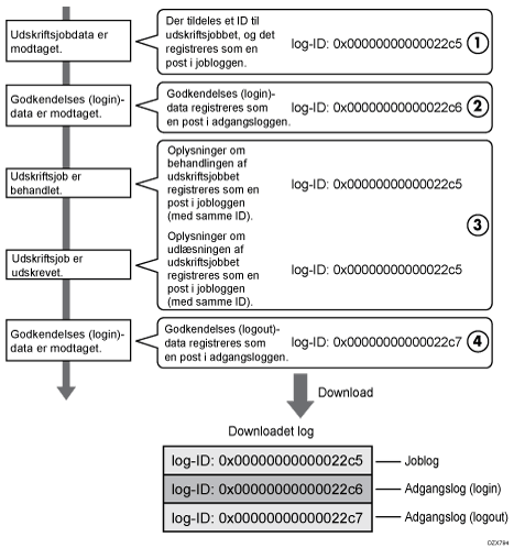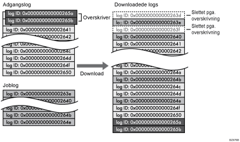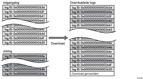 Jobloggen og adgangsloggen downloades som én fil arrangeret efter log-ID'erne.