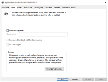 Hvis du markerer afkrydsningsfeltet [Delt] for at installere en alternativ driver, er denne procedure ikke påkrævet.