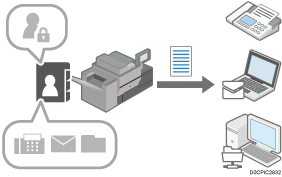 Damit nur authentifizierte Anwender auf das Gerät zugreifen können, registrieren Sie einen Anmelde-Anwendernamen und ein Passwort, mit denen sich der Anwender authentifizieren kann. Anwender können auch ihre Zielangaben wie Faxnummern oder E-Mail-Adressen eintragen.