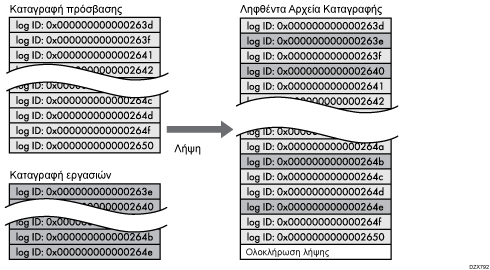Η λήψη των καταγραφών εργασιών και των καταγραφών πρόσβασης γίνεται ως ένα αρχείο, ταξινομημένο βάσει αναγνωριστικού καταγραφής.