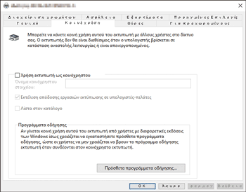 Για να μοιραστείτε τον εκτυπωτή με χρήστες που χρησιμοποιούν άλλες εκδόσεις των Windows, κάντε κλικ στο [Πρόσθετα προγράμματα οδήγησης].