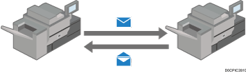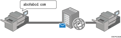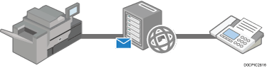 Los documentos se envían y reciben a través de una conexión de Internet entre dispositivos que admiten el uso de Fax a través de Internet. Al enviar un fax, especifique el destino mediante la introducción de su dirección de correo electrónico. El documento se envía en forma de adjunto de un mensaje de correo electrónico. Puede utilizar esta función para enviar y recibir faxes entre la máquina y un dispositivo de otro fabricante que admita el uso de Internet Fax.