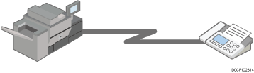Se envía un fax a través de una línea telefónica pública al destino. Especifique el número de fax (número de teléfono) del destino. Puede utilizar esta función para enviar y recibir faxes entre la máquina y un dispositivo que no admita el uso de IP-Fax o Fax por Internet.