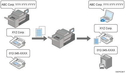 Vous pouvez sélectionner Transfert dans [Paramètres fichier RX] et dans [Enregistrer expéditeur spécial]. Pour effectuer un Transfert pour les fax provenant d'Expéditeurs spéciaux, configurez les paramètres comme suit :