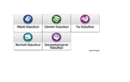 A gépen a standard funkciók klasszikus alkalmazásokként jelennek meg. A klasszikus alkalmazások a nevükhöz csatolt "(klasszikus)" felirattal jelennek meg, például: " Másoló (klasszikus) ".