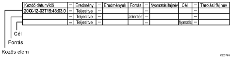 A feladatnapló és hozzáférési napló közös elemei egy sorban kerülnek a kimenetbe.