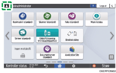 Hvis du logger inn på maskinen med administratorrettigheter, vises navnet på administratoren som logger inn. Når du logger deg på med et brukernavn som har flere administratorrettigheter, vil en av administratorrettighetene tilknyttet dette brukernavnet vises.