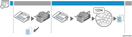Het apparaat slaat de ontvangen documenten op in het geheugen op een bepaalde dag van de week of gedurende een specifieke periode van de dag. Voer de viercijferige Geheugenbeveiliging-ID in om het document af te drukken.