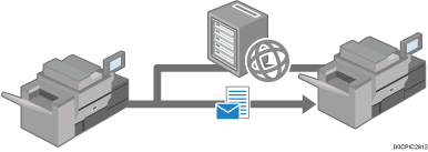 Аппарат интерпретирует строку после значка "@" в адресе получателя как SMTP-сервер и отправляет факс без прохождения через фактический SMTP-сервер. Данный метод позволяет снизить нагрузку на SMTP-сервер и сократить время, требуемое для прохождения через него.