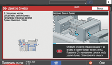 При сшивании бумага не подается в выходной лоток. | Несшитые листы остаются внутри аппарата, если копирование было отменено во время печати со сшиванием. | Нажмите [Переустановить] и удалите бумагу из модуля сшивания. |