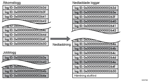 Jobbloggen och åtkomstloggen laddas ned som en fil sorterad på logg-ID.