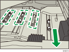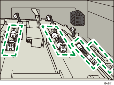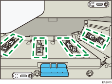 Cuando se utilice papel NPC, deberá limpiarse el rodillo para evitar que aparezcan manchas en la cara impresa del papel cuando se ensucien los rodillos de transporte de las posiciones que se indican a continuación.