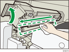 Para limpiar el rodillo de transporte de la parte posterior derecha, limpie el rodillo desde el lado inferior.
